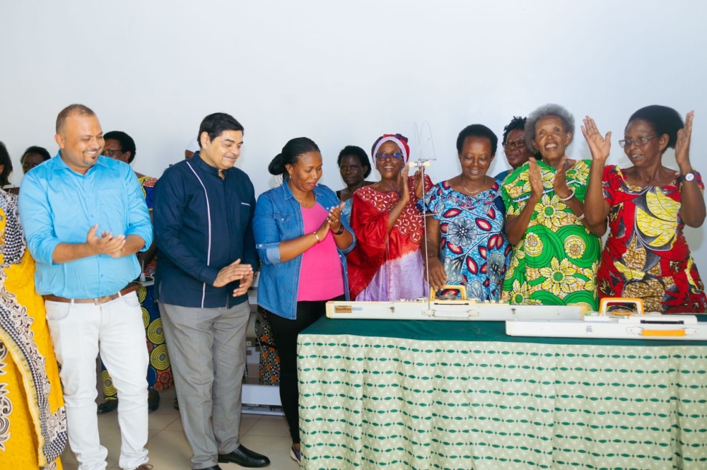 Members of the Association of Widows of the Genocide, AVEGA-Agahozo who are beneficiaries of the donation, thank Steel Rwa officials during the handover ceremony of six electric sewing machines on Friday October 27. Courtesy