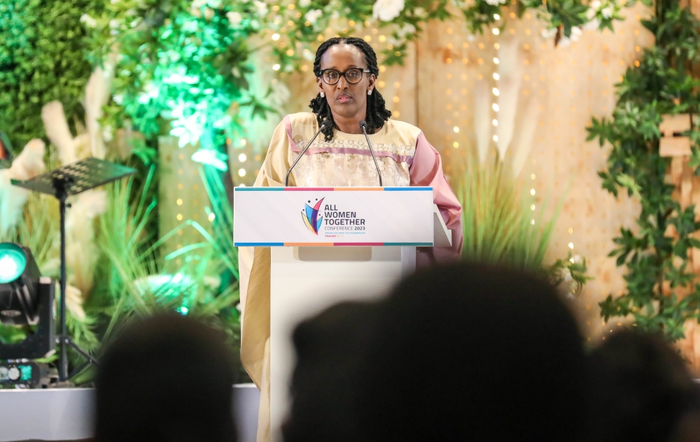 First Lady Jeannette Kagame delivers her remarks during the World Leaders’ Cancer Summit that  on Monday, October 16. Courtesy