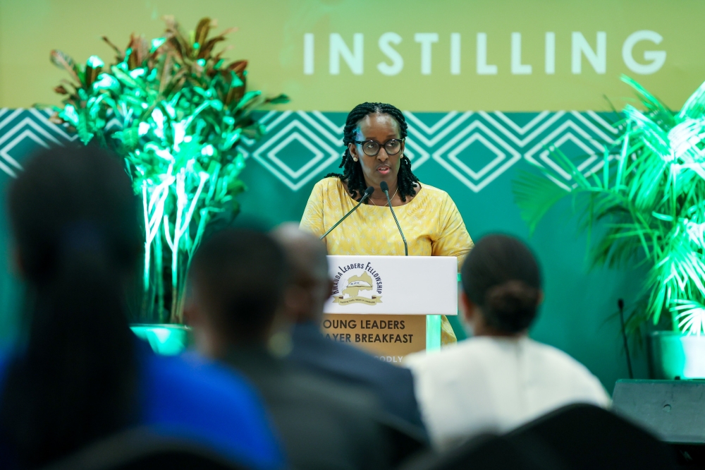 President Paul Kagame addresses delegates during the event  at the Kigali Convention centre when MTN Rwanda celebrate 25 years of presence in the country, on Wednesday, October 18. PHOTO BY VILLAGE URUGWIRO