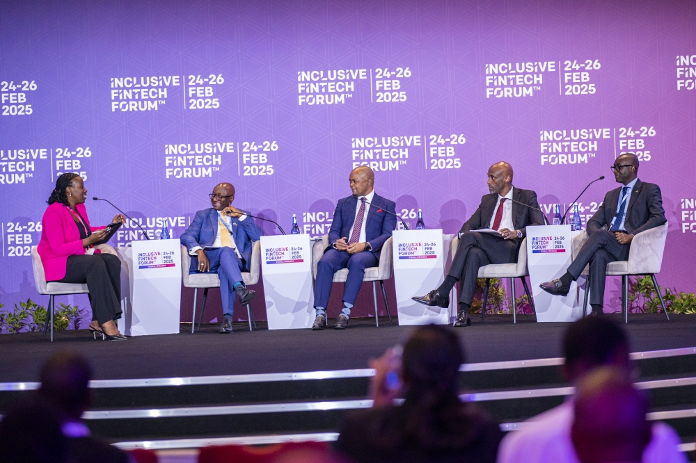 Panelists engage in a discussion on “Bridging the Funding Gap Building Private Capital and Leveraging Development Finance” as part of the Inclusive Fintech Forum 2025, in Kigali. Photo by Dan Gatsinzi