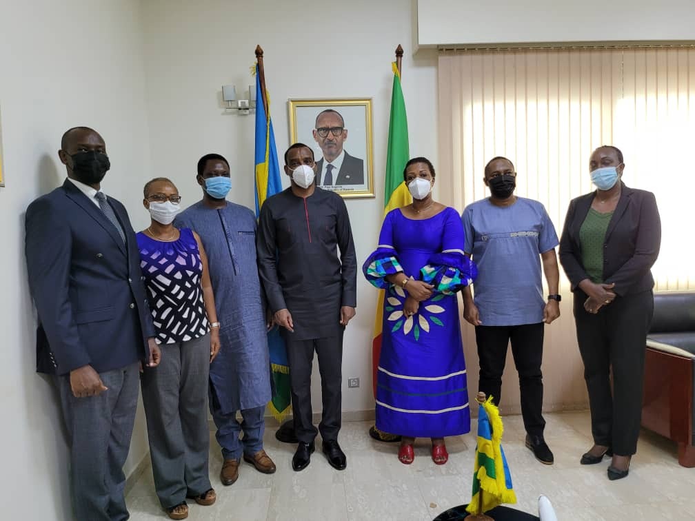 Edouard Ngirente, the Prime Minister and Dr. Ali Parsa, Founder and CEO of Babylon Health pose for a group photo with both delegations  in Kigali on December 2,2021. / Courtesy