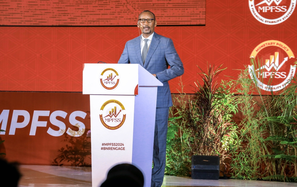 The Governor of the National Bank of Rwanda (BNR), John Rwangombwa addresses journalists in Kigali on Thursday, February 13. Photo by Craish Bahizi