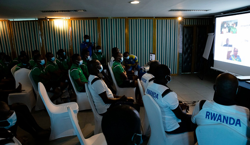 National volleyball team players during a training session at Amahoro Stadium . Photo by Dan Nsengiyumva