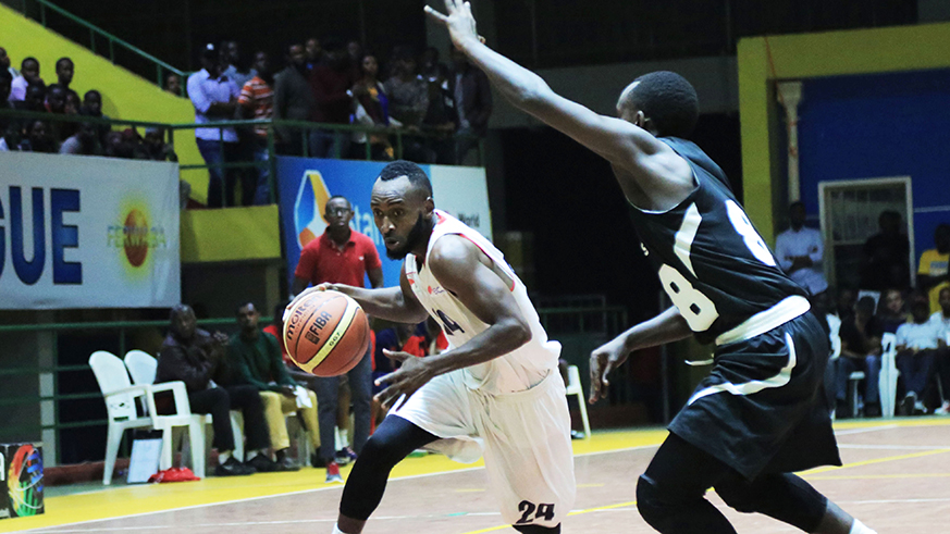 REG Basketball club point guard Nshobozwabyosenumukiza during a league match against Patriot last year. The 2021 league is likely to kick off on April 2. / Photo: Sam Ngendahimana.