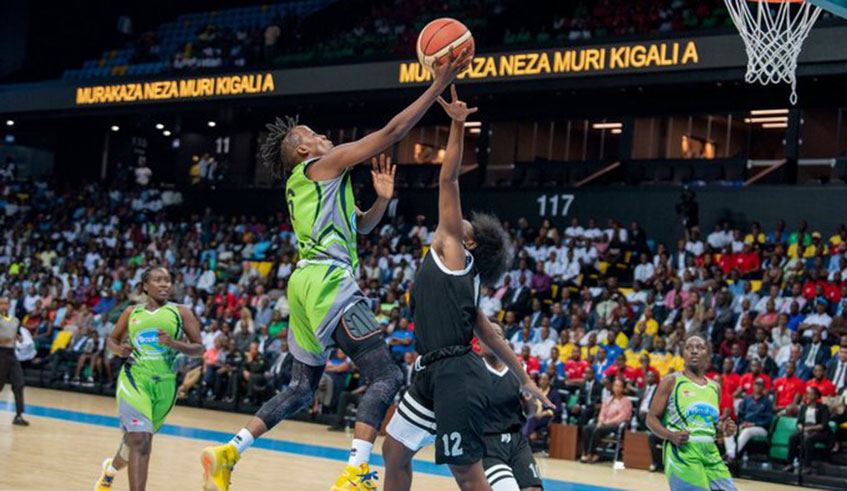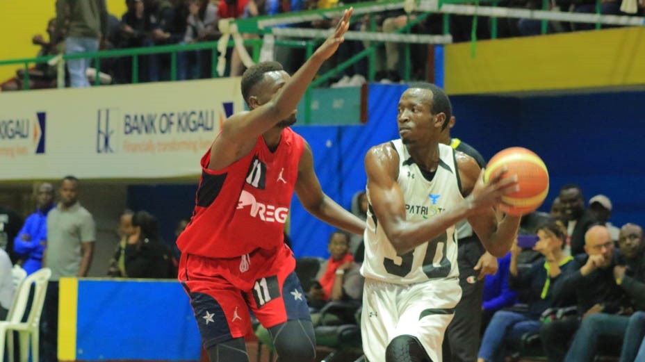 Beleck Bell (with the ball) contributed a team-high 18 points during REG's 77-64 win over Patriots at Amahoro Indoor Stadium on Friday night. Photo: