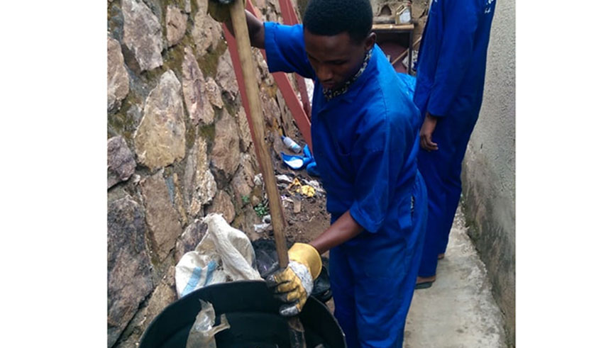 Nicholas Peter Lubwama cleans a desktop at his shop in Kigali.Courtesy.