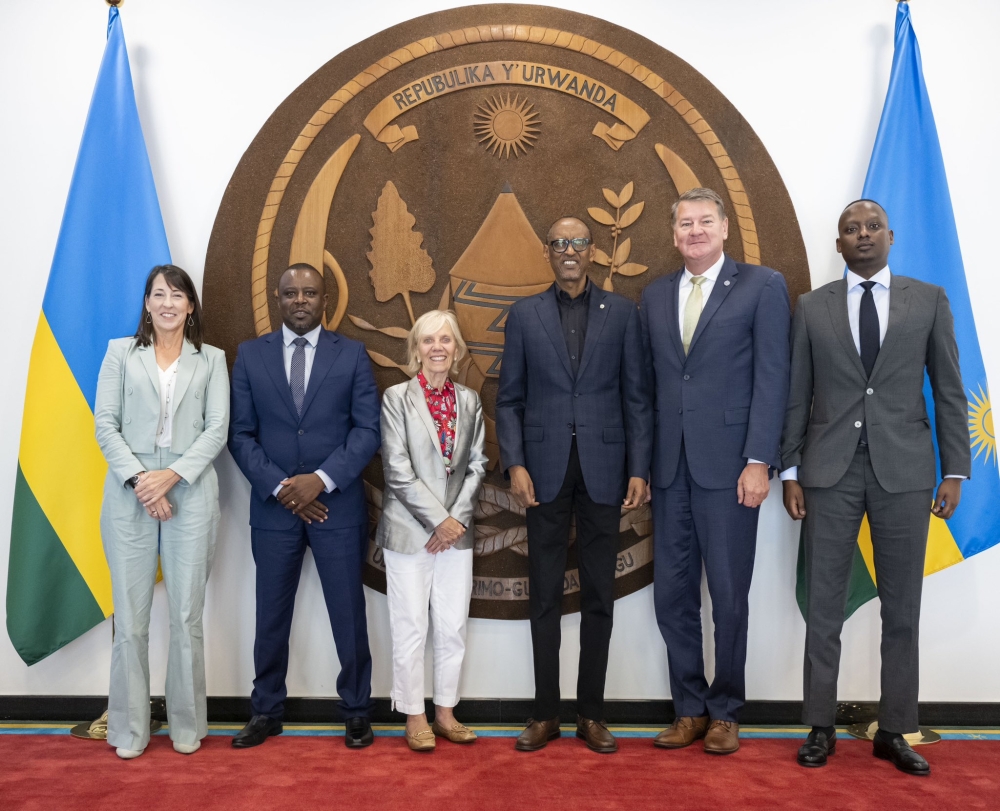 President Kagame poses for a photo with Catholic clerics visiting his office on Saturday, August 2. Photo by Village Urugwiro