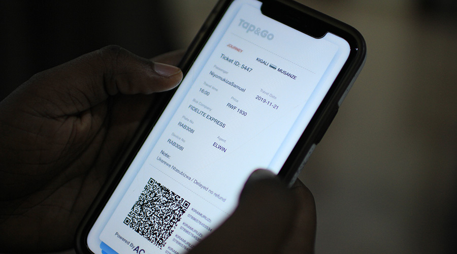 A mobile money agent provides some transactions to a motorcyclists who delivers different items shopped through e-commerce. / Photo: Sam Ngendahimana.
