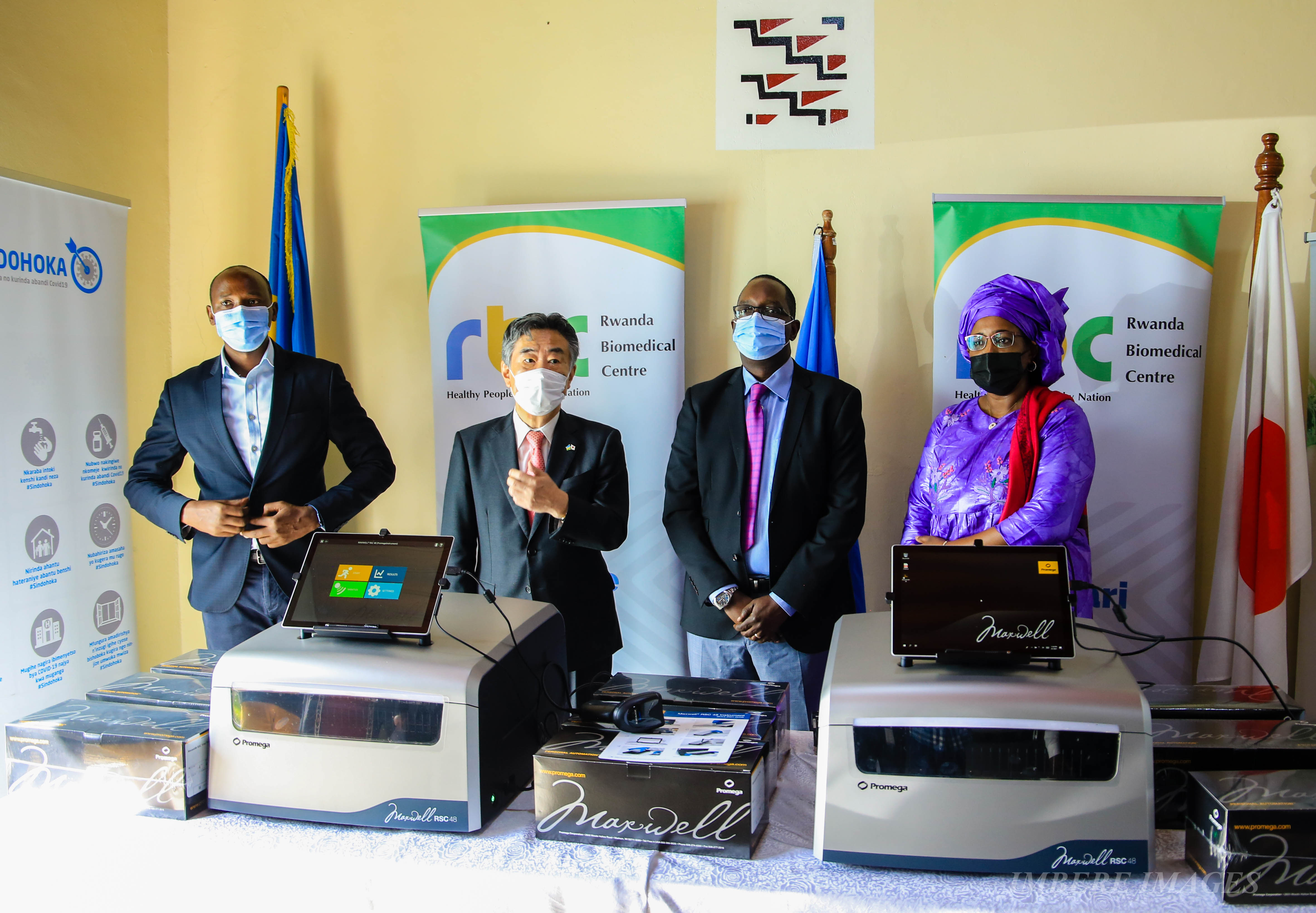 Amb. RAO Hongwei (left) poses with winners of the top prize during the awarding ceremony of the China-Rwanda Friendship Cup Photo Contest in Kigali in 2019. / Photo: File.