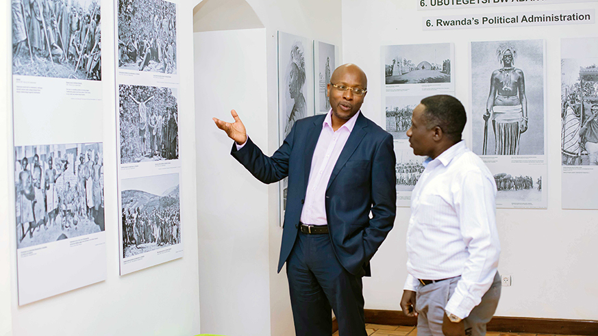 Prof Tharsisse Gatwa (L) and Prof Deogratius Mbonyinkebe during the official launch of the book in Kigali on Friday. / Sam Ngendahimana