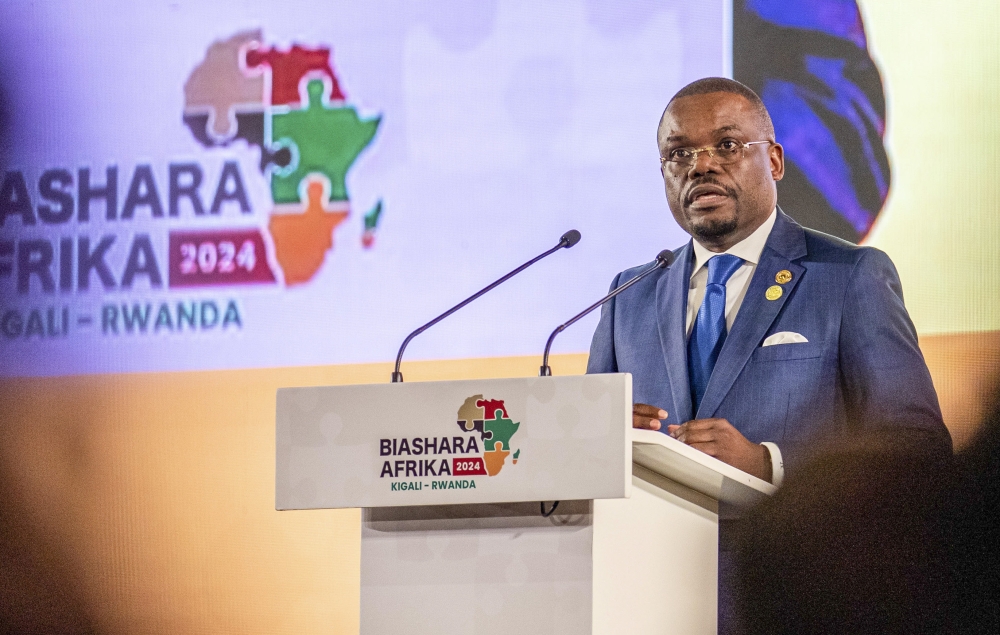 Secretary General of the AfCFTA Secretariat Wamkele Mene delivers his remarks at the  Biashara Afrika 2024 in Kigali on Wednesday, October 9. Courtesy