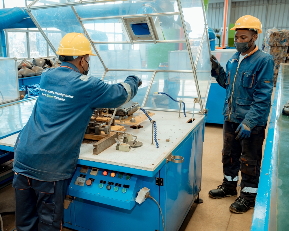 Workers on duty at Enviroserve Rwanda e-waste dismantling and sorting facility. Photo: File.