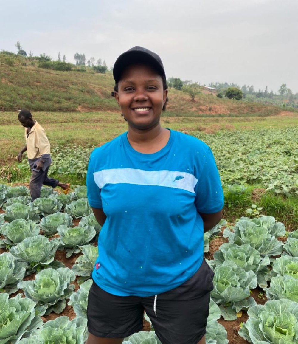 Julienne Umuhoza,a student at IPRC - Huye campus, in the department of civil engineering , poses for a photo with other girls in Sciences. Courtesy