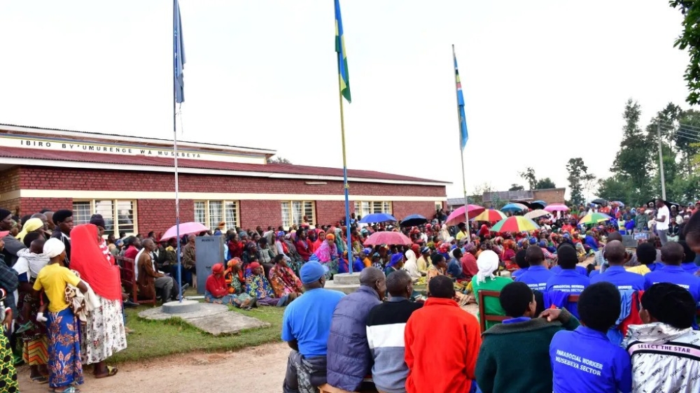 A group of suspects presented to the journalists at Rwanda Investigation Bureau Headquarters on June 30. They were  suspected of selling land that does not belong to them. Courtesy