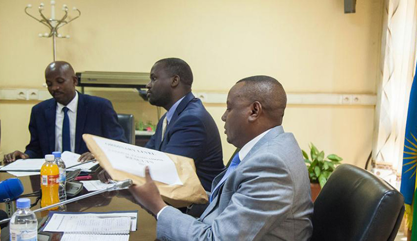 Minister Ndagijimana arrives at parliament to present the 2019-2020 Budget on Thursday. / Sam Ngendahimana