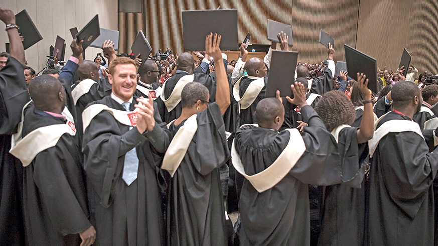 University of Rwanda graduates take oath of integrity during the schoolu2019s 5th graduation ceremony. Yesterday 7050 graduates were awarded their respective degree. Courtesy.