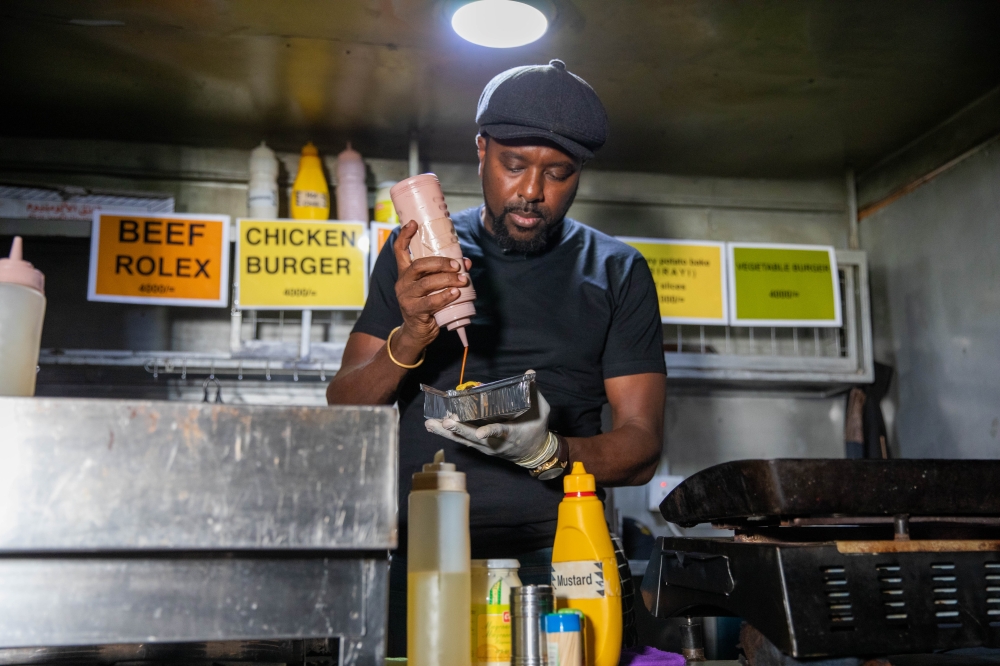 A waiter serves a customer at a hotel in Kigali. Sam Ngendahimana