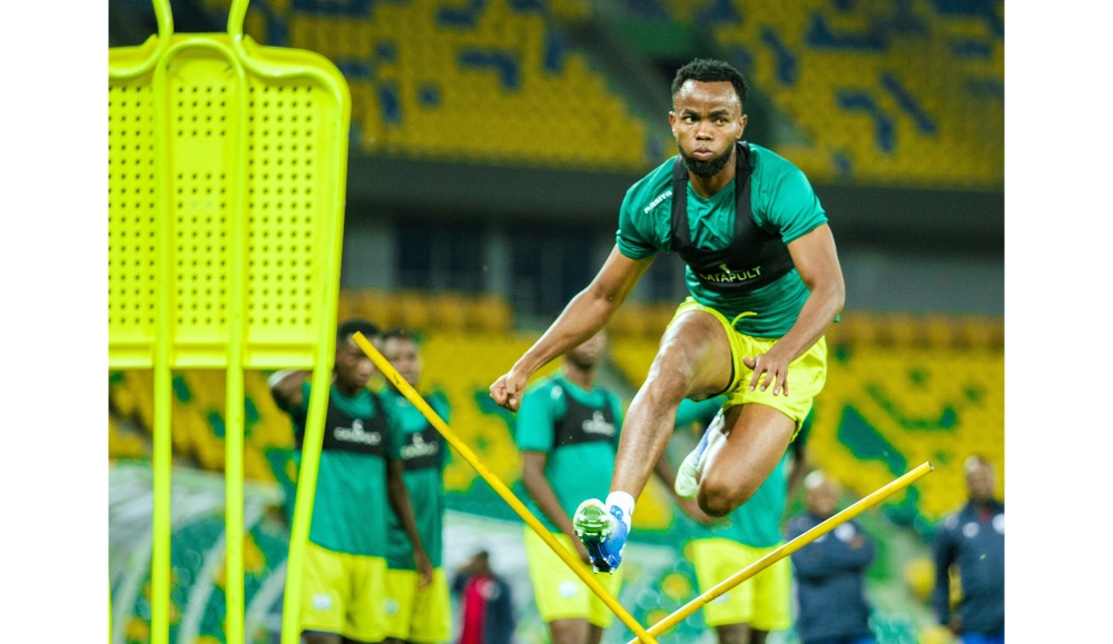 Tanzanian striker Raymond Lolendi at Rayon Sports training.