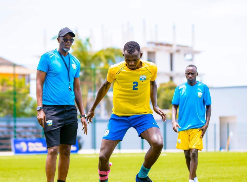 Rwanda caretaker coach Jimmy Mulisa inspects Amavubi training session at Amahoro Stadium.