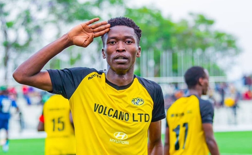 Mukura Victory Sports midfielder Elia Kategeya celebrates his goal. Huye based player has agreed personal terms with APR FC as his move to the army side beckons. Courtesy