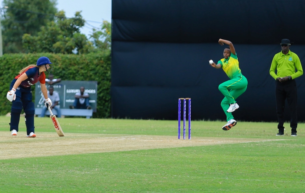 AS Kigali Women player tries a ball kick against Tanzanian side JKT Queens during their opening game of the CECAFA CAF Women's Champions League. AS Kigali was beaten 2-1. Courtesy