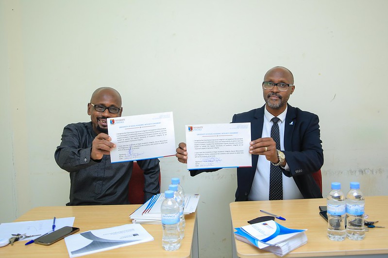 Prof. Robert E. Hinson deputy vice chancellor-Academic, Prof DR. TOMBOLA M. GUSTAVE vice-chancellor of University of Kigali after signing the academic integrity, sexual misconduct, and plagiarism policy on November 26. / All photos by Dan Nsengiyumva