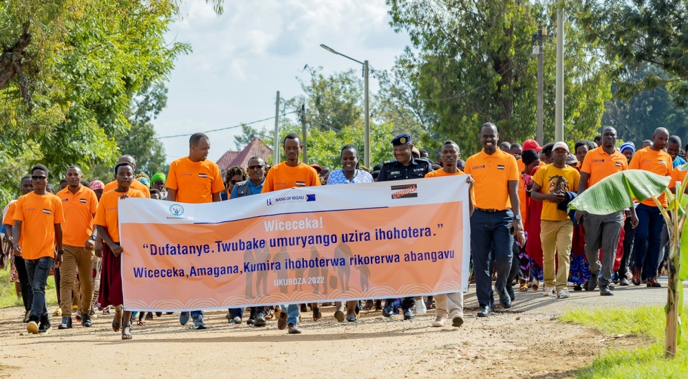 Ruhango residents and officials march during an anti-GBV awareness campaign as part of activities for the 16 days of activism against gender-based violence. Courtesy
