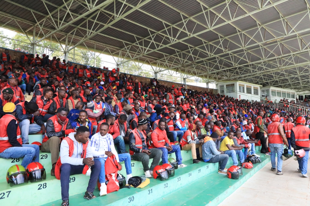 Thousands of taxi- moto operators during the meeiing with Rwanda Cooperatives Agency together with the City of Kigali and Rwanda National Police at Kigali stadium on Monday, November 14.Craish Bahizi