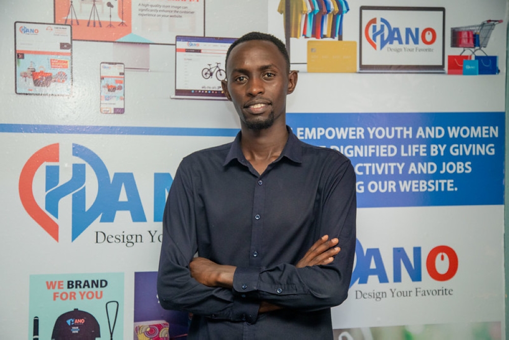 Luqman Muramba, who created Hano Online, a platform he meant to use to promote digital and physical products, during the interview. Photo by Willy Mucyo
