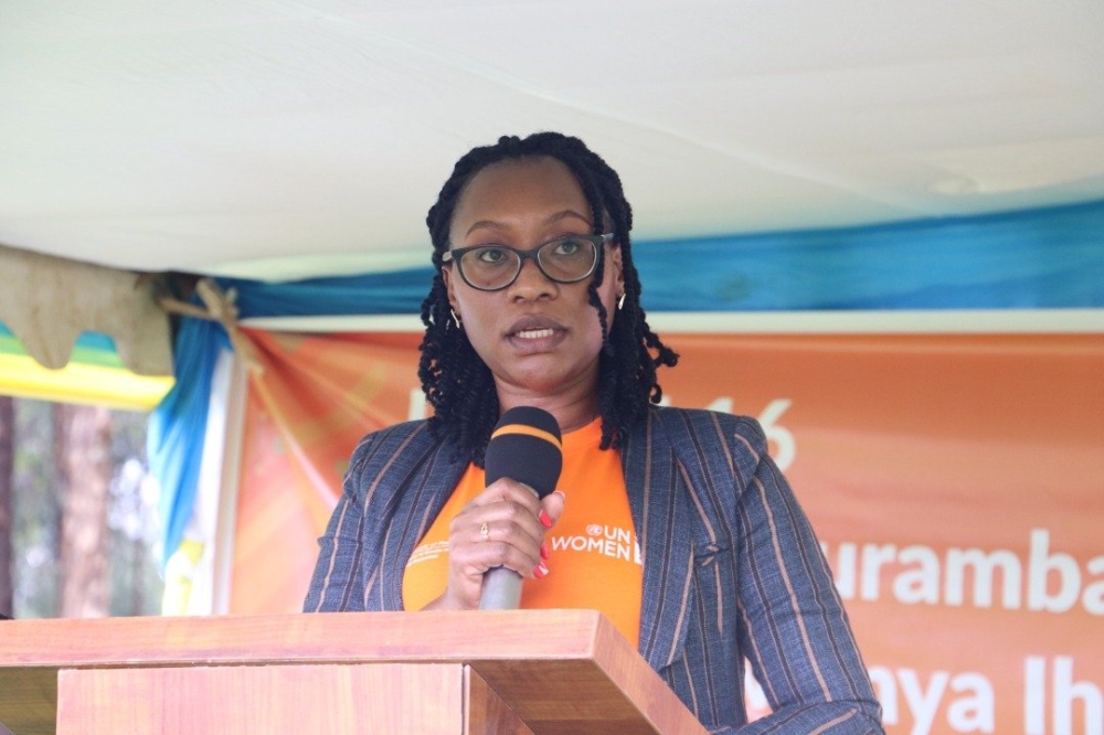 Jeannette Bayisenge, Minister for Gender and Family Promotion delivers remarks during the ceremony that marked the celebration of the International Day for the Elimination of Violence against Women on Friday, November 25. Courtesy