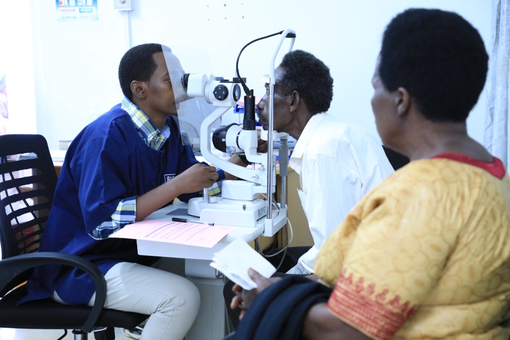 A doctor conducts eye screening at Masaka Hospital in Kicukiro District on October 13. Ministry of Health will carry out at least 1,000 cataract surgery on patients during an exercise slated to take place from October 13 to November 30. All Photos by Craish Bahizi