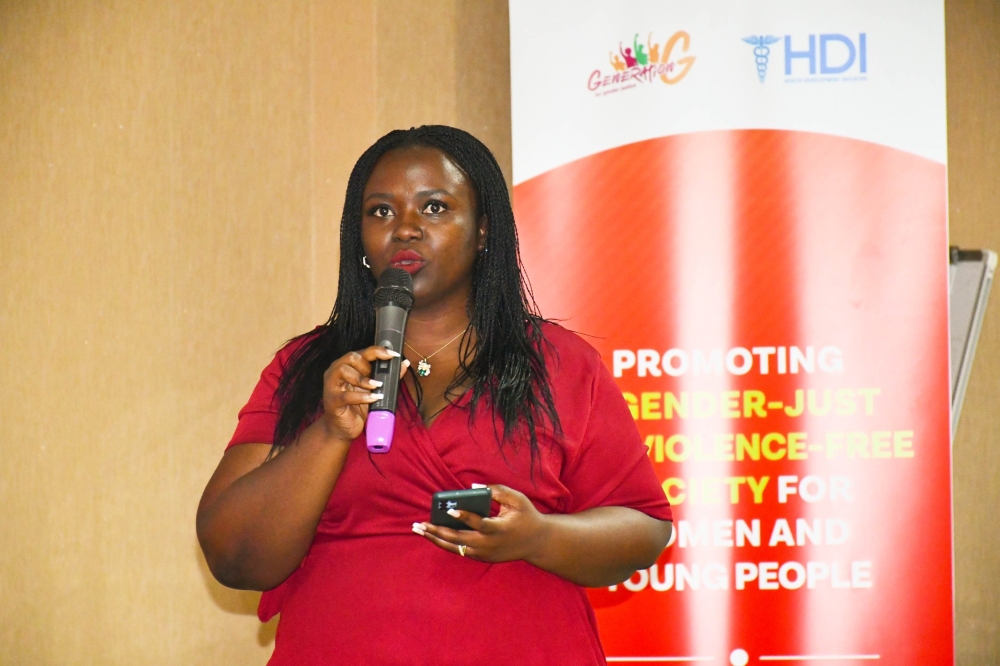 Juliette Karitanyi, feminist and Director of Communications addresses, participants during a workshop. / Courtesy