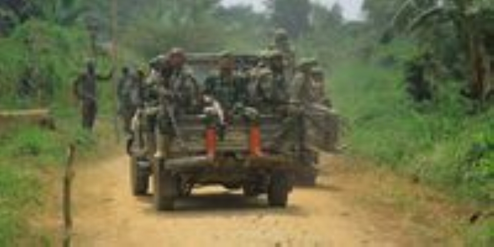 Armed Forces of the Democratic Republic of Congo on a patrol car in Mukakati on December 10, 2021. PHOTO | AFP