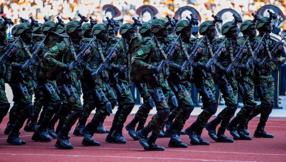 Some new officers during a parade at the passing-out ceremony of the 12th intake of Officer Basic Training, at Rwanda Military Academy in Gako on Friday, October 3. Among the 1,029 newly commissioned Rwanda Defence Force officers, 117 are women. All photos by Dan Gatsinzi