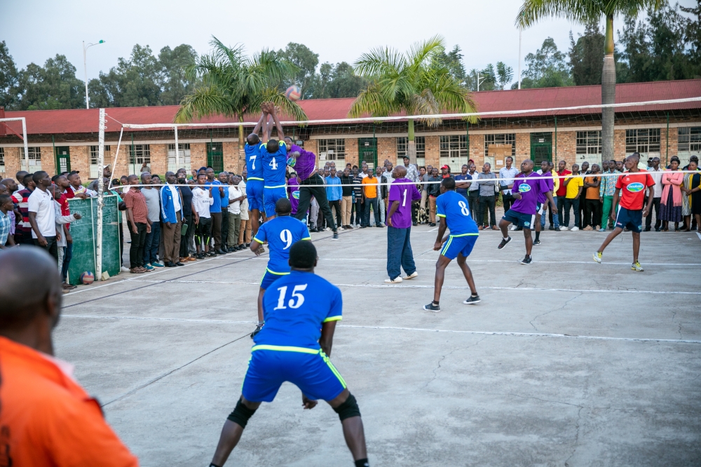 Players during a friendly game at Groupe Scolaire Officiel de Butare's volleyball playground in Huye District. Public schools have been urged to allow communities, especially youth, to access sports facilities in schools. / Photo by Olivier Mugwiza
